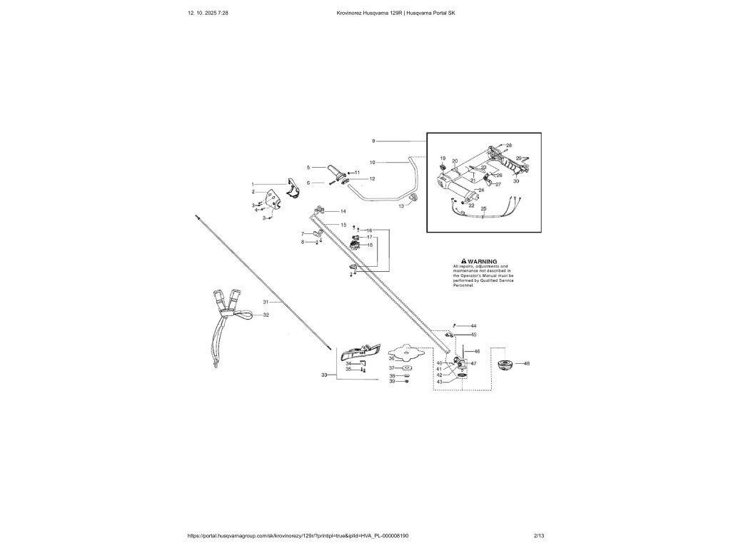 129R - HRIADEĽ A RUKOVÄŤ / Náhradné diely Husqvarna