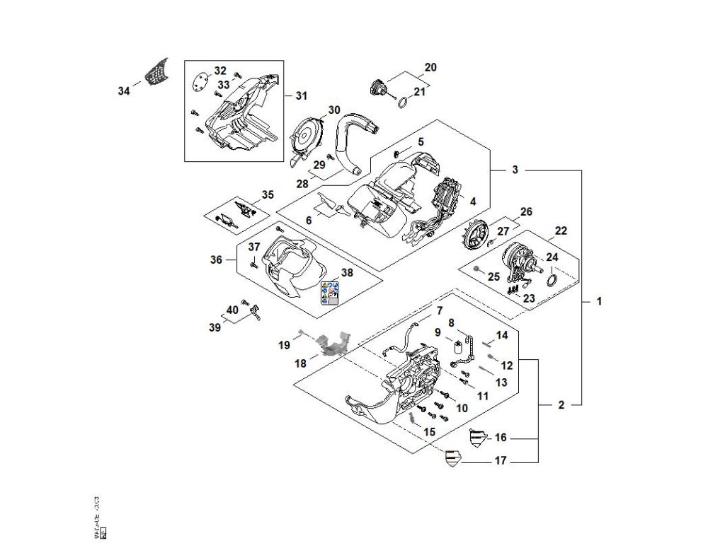 A - Elektromotor, elektronický modul, Teleso rukoväte / Náhradné diely Stihl