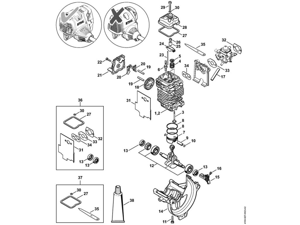 FS 89 / A - hnacia sústava ø 38 mm / Náhradný diel číslo: 37, Súprava, obsahuje diely č.: 27,30,35
