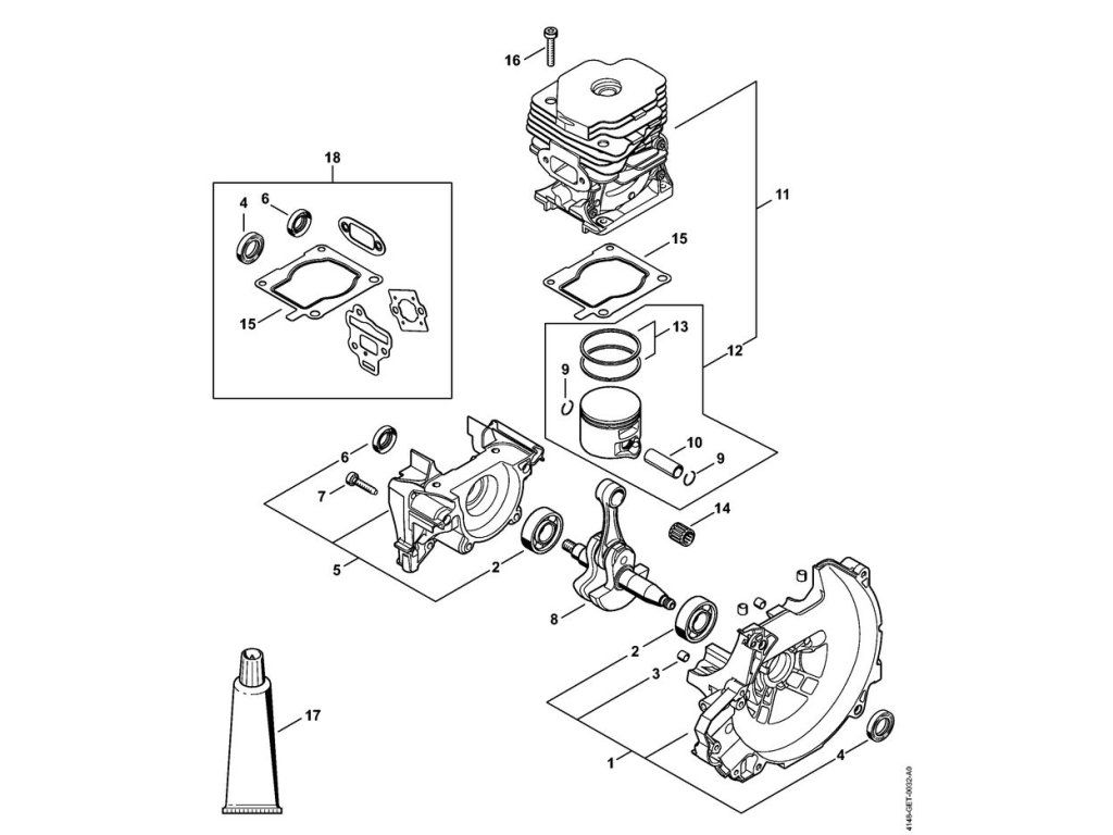 FS 560 C-EM / A - kľuková skriňa, valec / Náhradný diel číslo: 18, Súprava tesnenia, obsahuje diely č.: 4,6,15
