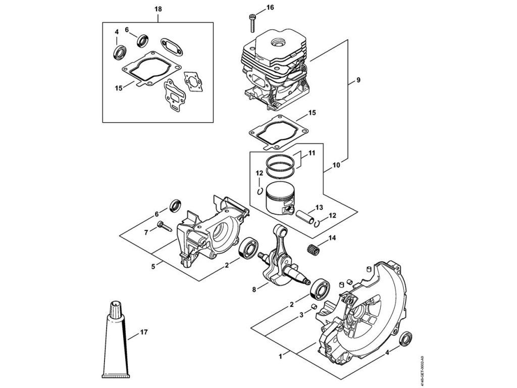 FS 561 C-EM / A - kľuková skriňa, valec / Náhradný diel číslo: 18, Súprava tesnenia, obsahuje diely č.: 4,6,15