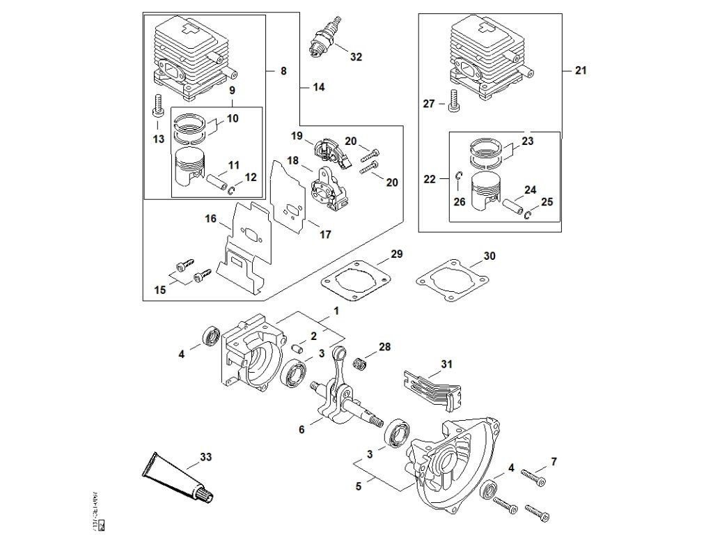 A - Kľuková skriňa, valec / Náhradné diely Stihl