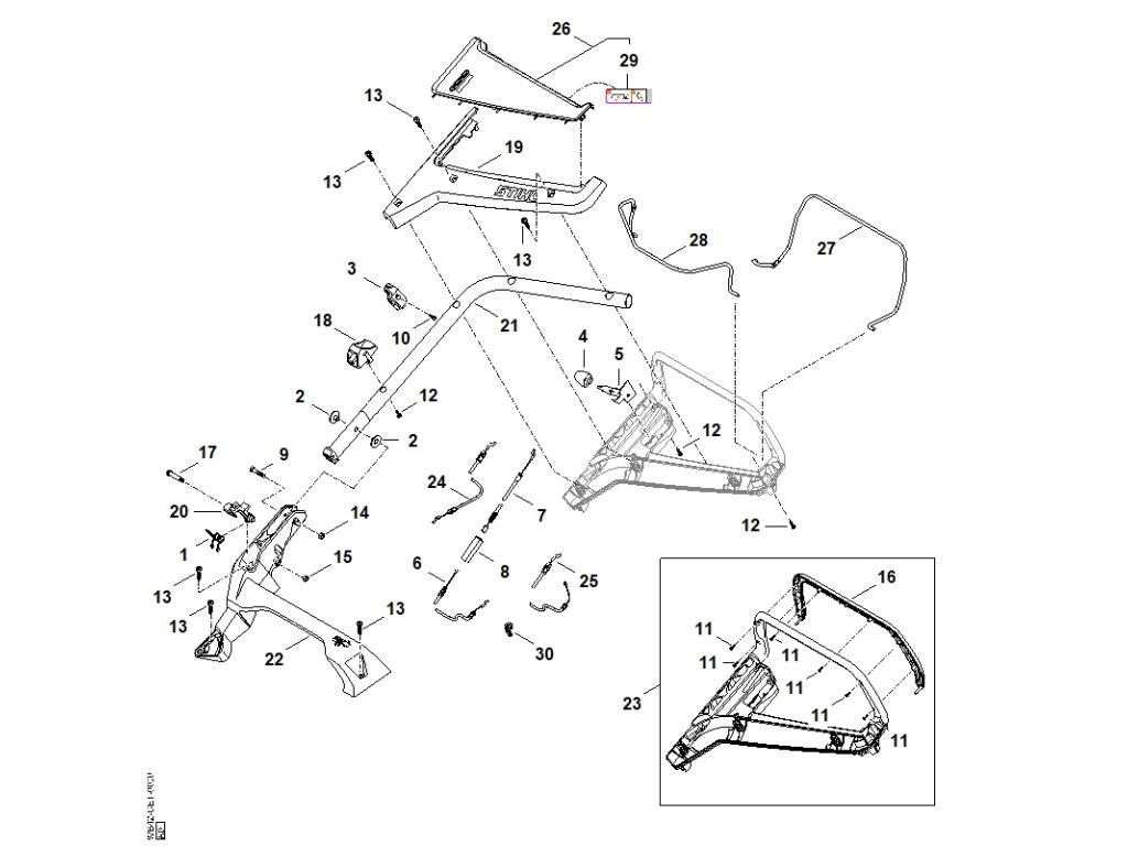 RM 453.3 V / A - volant / Náhradný diel číslo: 23, Volant - horná časť, obsahuje diely č.: 11, 16