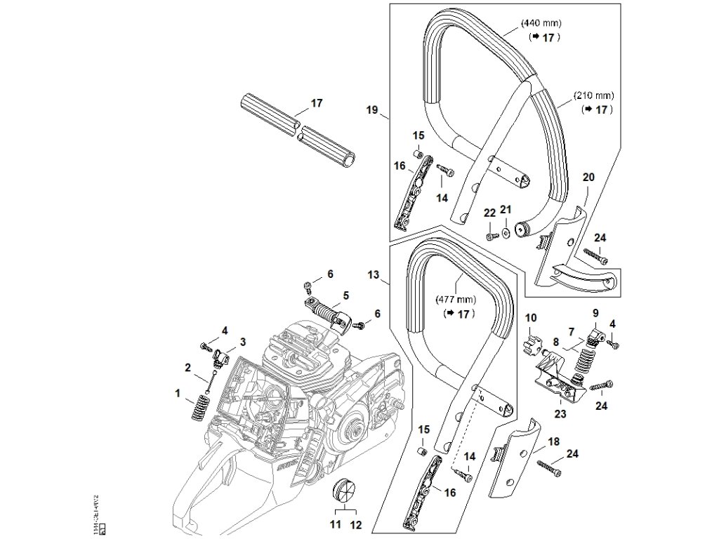 MS 661 C-M W / Ad - av systém, rúrkové držadlo / Náhradný diel číslo: 23, Držiak rúrkovej rukoväte
