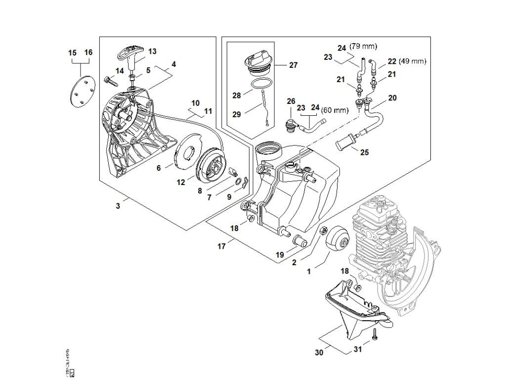 FS 89 / B - štartovacie zariadenie, palivová nádržka / Náhradný diel číslo: 29, Lanko
