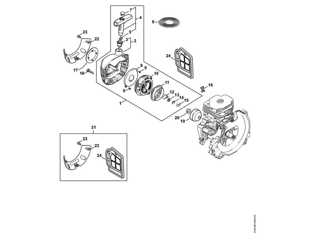 FS 560 C-EM / B - štartovacie zariadenie / Náhradný diel číslo: 21, Súprava, obsahuje diely č.: 22,23,24
