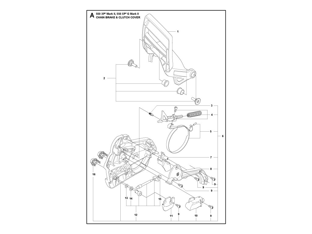 550 XP G Mark II / Brzda reťaze a kryt spojky / Náhradný diel číslo: 6, KRYT SPOJKY -ZOSTAVA