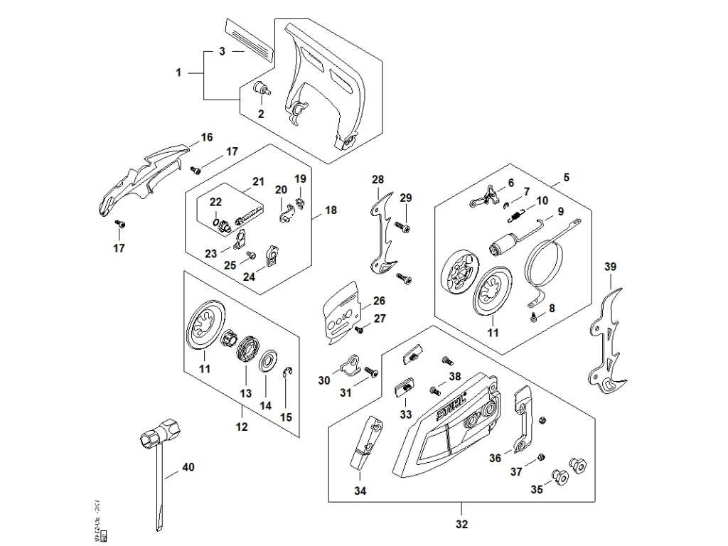 C - Ochrana ruky, reťazová brzda, napínacie zariadenie reťaze / Náhradné diely Stihl