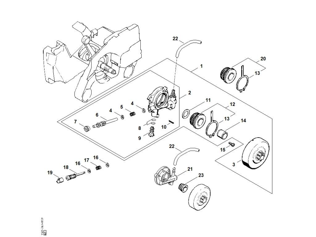 MS 260 / C - olejové čerpadlo / Náhradný diel číslo: 1, Súprava, obsahuje diely č.: 2,3,4,5,6,7,8,9,10,11,12,13,14