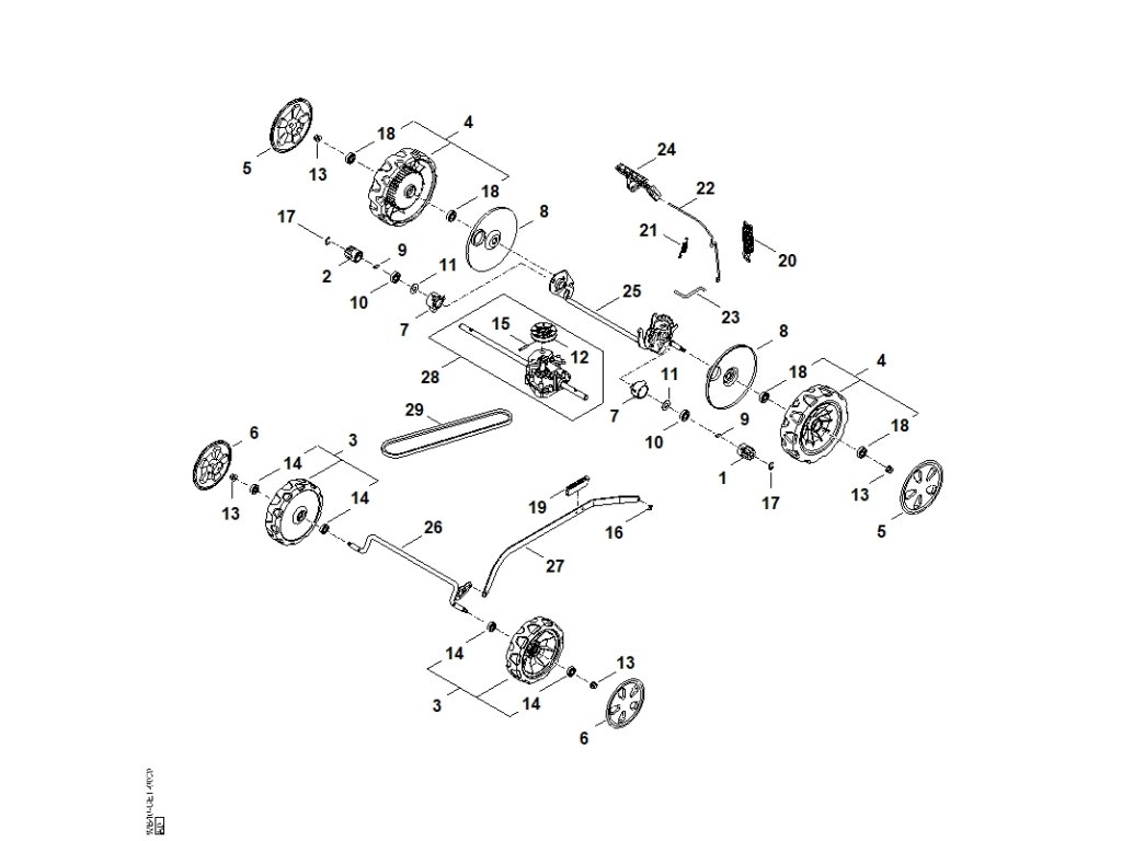 RM 443.3 T / C - podvozok, prevodovka / Náhradný diel číslo: 4, Koliesko, obsahuje diely č.: 18