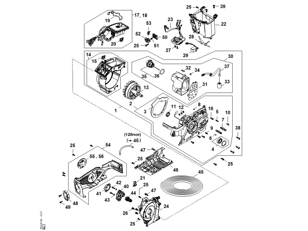 MSA 300.0 C-O / A - elektromotor, elektronický modul, olejová nádržka / Náhradný diel číslo: 54, Blok motora, obsahuje diely č.: 55,56