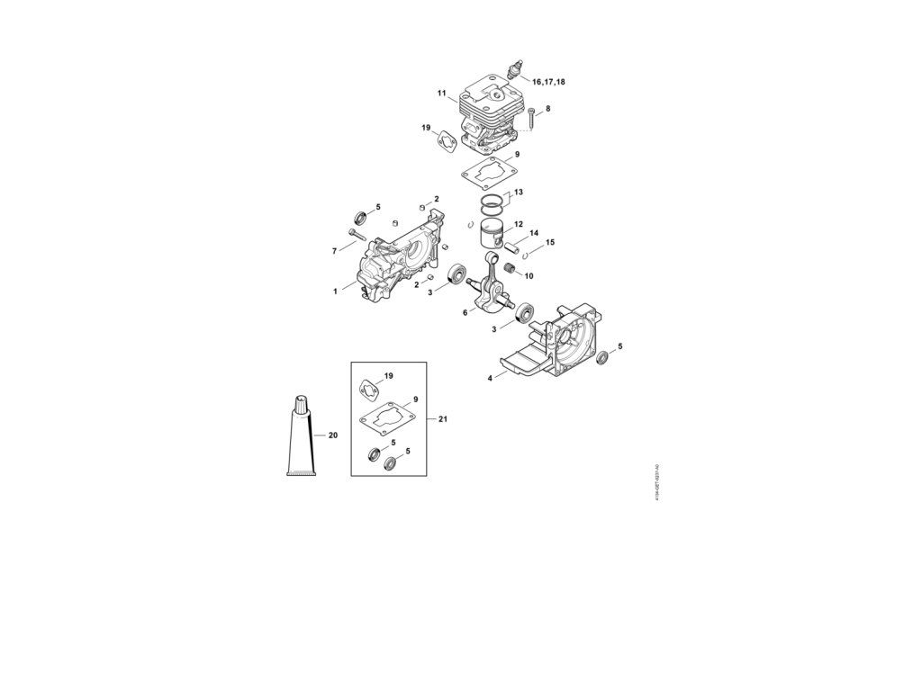 FS 120 2-MIX / A - kľuková skriňa, valec fs 120 2-mix / Náhradný diel číslo: 21, Súprava tesnenia, obsahuje diely č.: 5,9,19