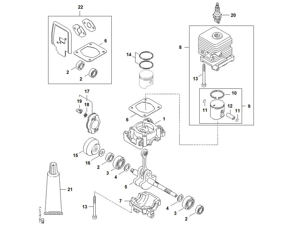 FS 55 / A - kľuková skriňa, valec / Náhradný diel číslo: 22, Súprava tesnenia, obsahuje diely č.: 2,6