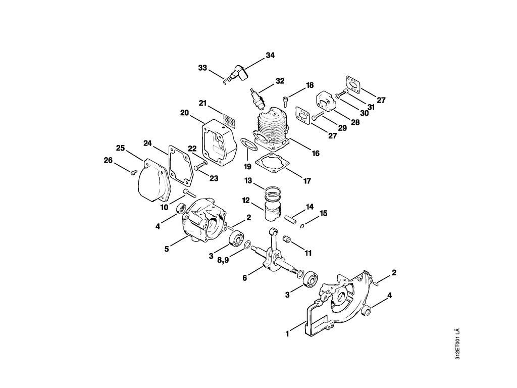 A - Kľuková skriňa, valec / Náhradné diely Stihl
