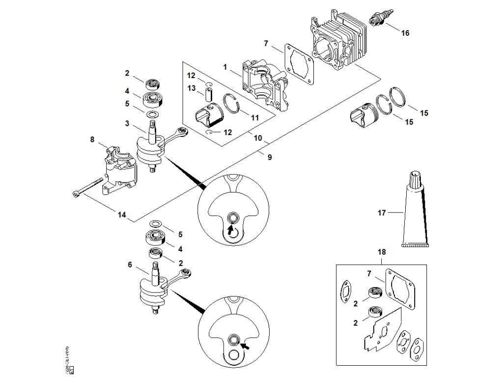 A - Kľuková skriňa, valec / Náhradné diely Stihl