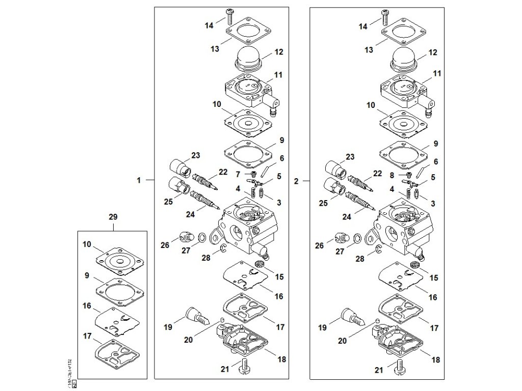 FS 55 2-MIX / Ab - karburátor c1q-s216, c1q-s190 2-mix (16.2014), (39.2011) / Náhradný diel číslo: 29, Súprava dielov karburátora, obsahuje diely č.: 9,10,16,17