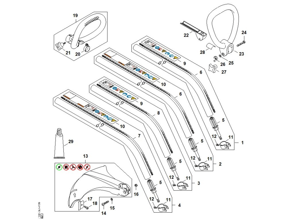 FS 45 C-E / Ah - fs 45, 46: násada, rúrková rukoväť / Náhradný diel číslo: 13, Chránič, obsahuje diely č.: 17,18