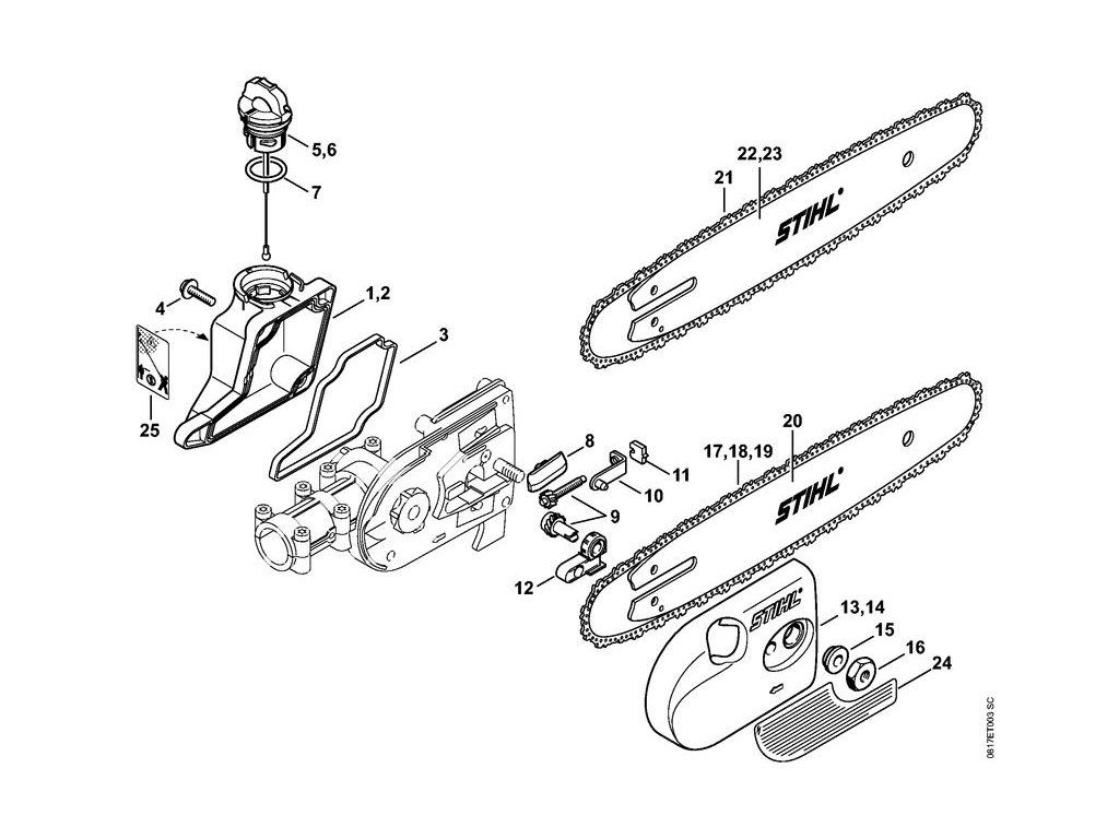 Ht 75 / Ai - olejové čerpadlo, kryt reťazového kolesa ht 70 (38.2016) / Náhradný diel číslo: 23, Light 04 | 30cm/12" | 3/8" P | 1,3mm/.050"
