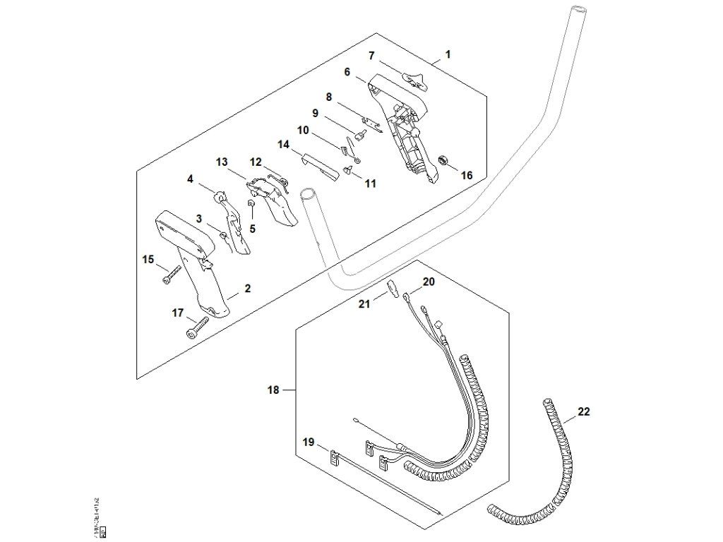 FS 55 / Ak - dvojručná rukoväť (27.2001) / Náhradný diel číslo: 1, Ovládacia rukoväť, obsahuje diely č.: 2,3,4,5,6,7,8,9,10,11,12,13,14,15,16,17
