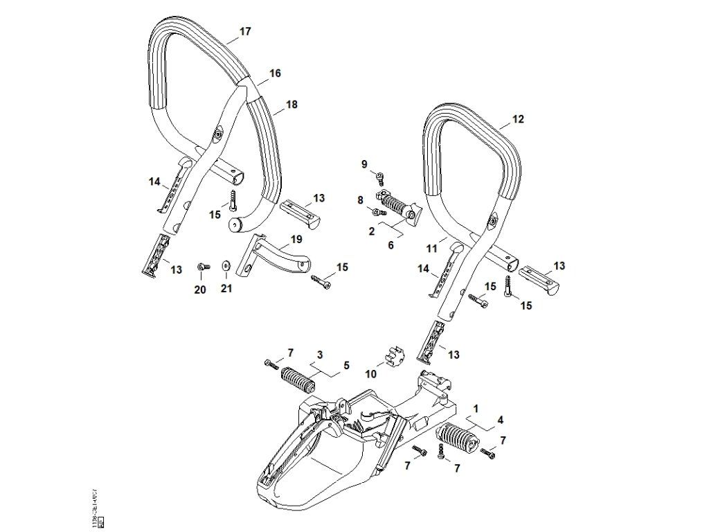 MS 441 / Av systém, rúrkové držadlo / Náhradný diel číslo: 11, Rúrková rukoväť, obsahuje diely č.: 12
