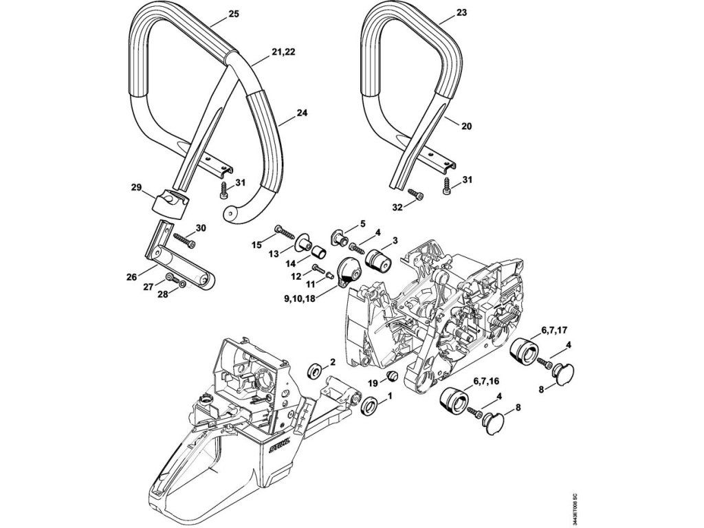 AV systém, rúrkové držadlo / Náhradné diely Stihl