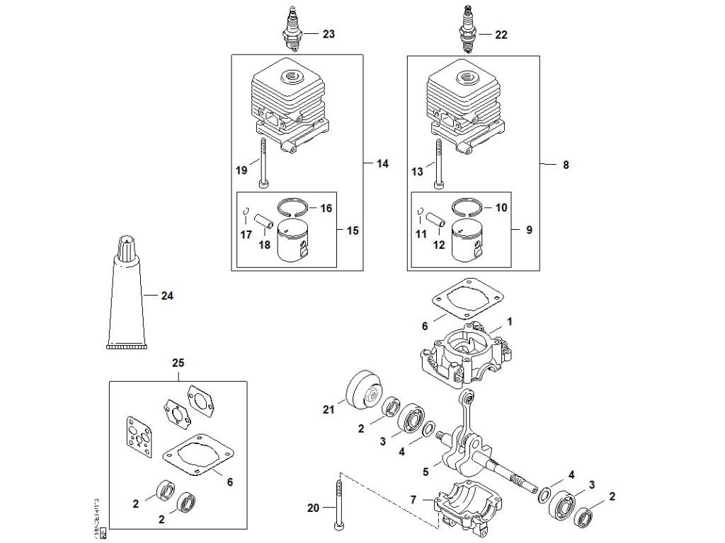 B - Kľuková skriňa, valec 2-MIX / Náhradné diely Stihl