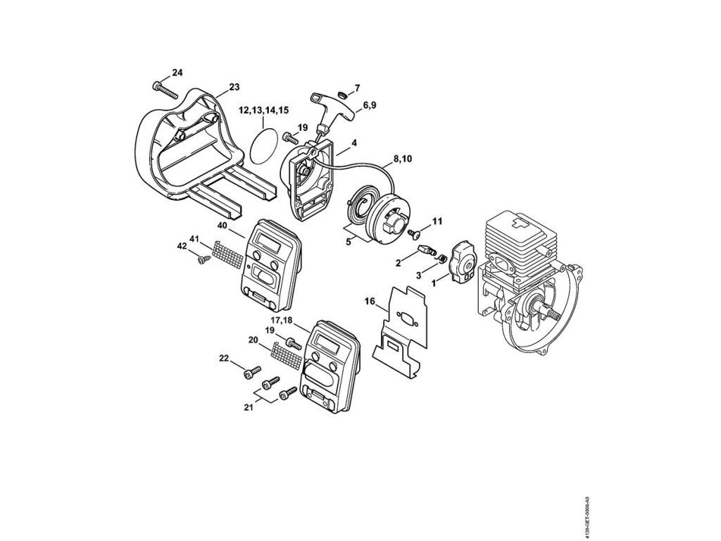 B - Štartovacie zariadenie, tlmič výfuku / Náhradné diely Stihl
