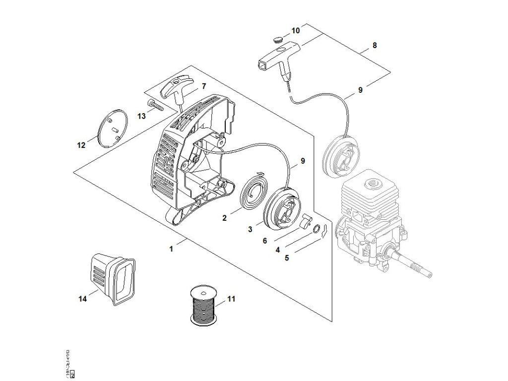 FS 55 2-MIX / C - štartovacie zariadenie / Náhradný diel číslo: 1, Štartovacie zariadenie, obsahuje diely č.: 2,3,4,5,6,7,9