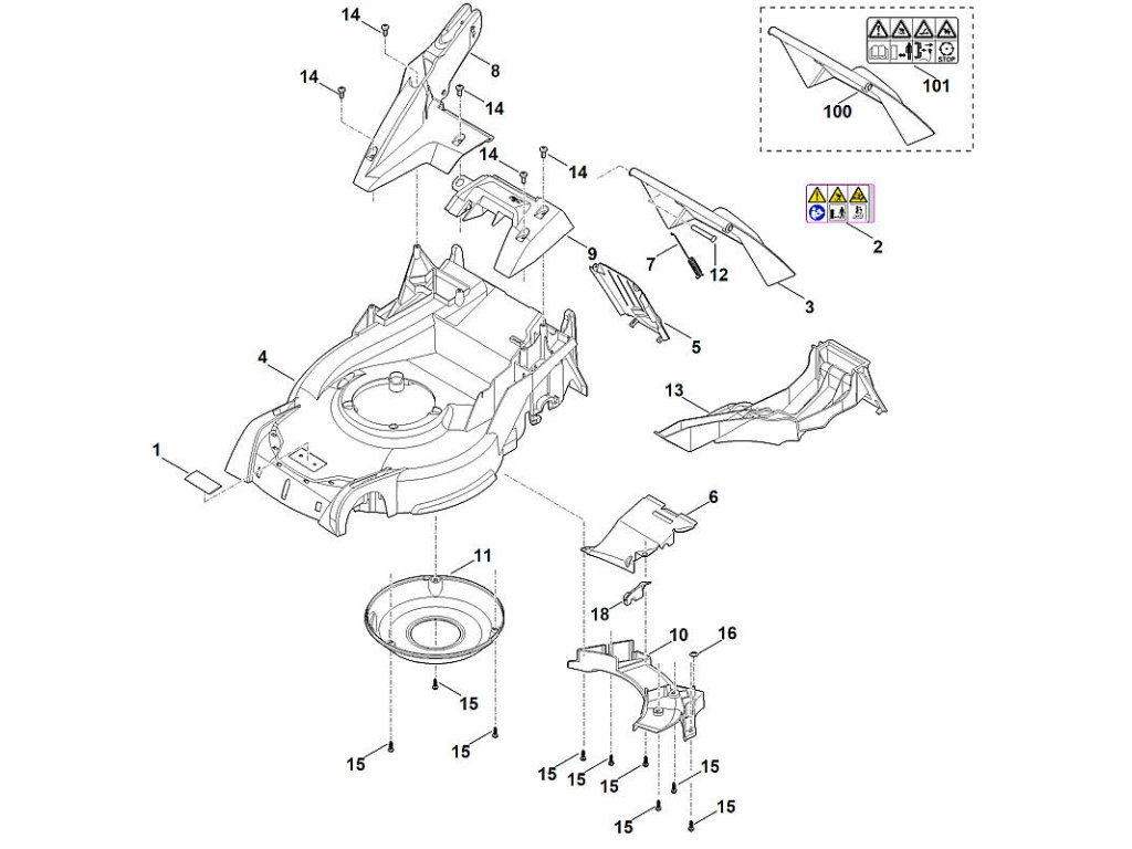 RM 650.0 V / C - teleso / Náhradný diel číslo: 100, Klapka, obsahuje diely č.: 101