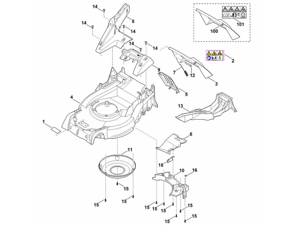 RM 650.0 T / C - teleso / Náhradný diel číslo: 101, Varovanie