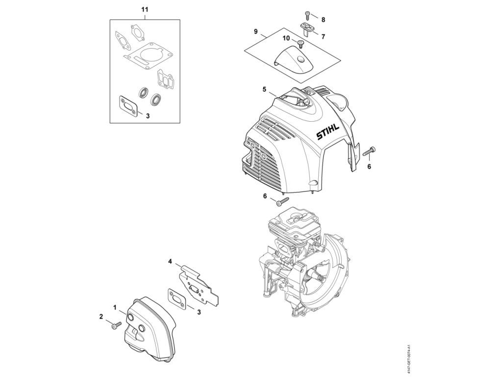 FS 411 C-EM / C - tlmič výfuku, kryt / Náhradný diel číslo: 3, Tesnenie tlmiča výfuku