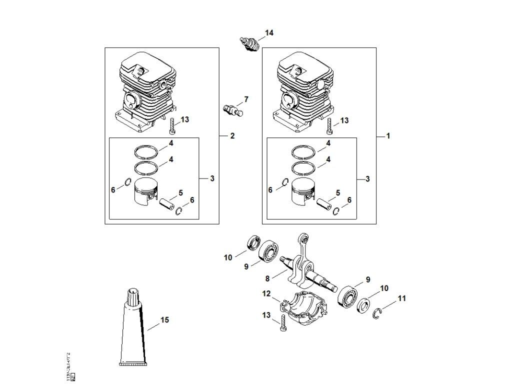 MS 180 / C - valec / Náhradný diel číslo: 1, Valec s piestom Ø 38 mm, obsahuje diely č.: 3,4,5,6,14