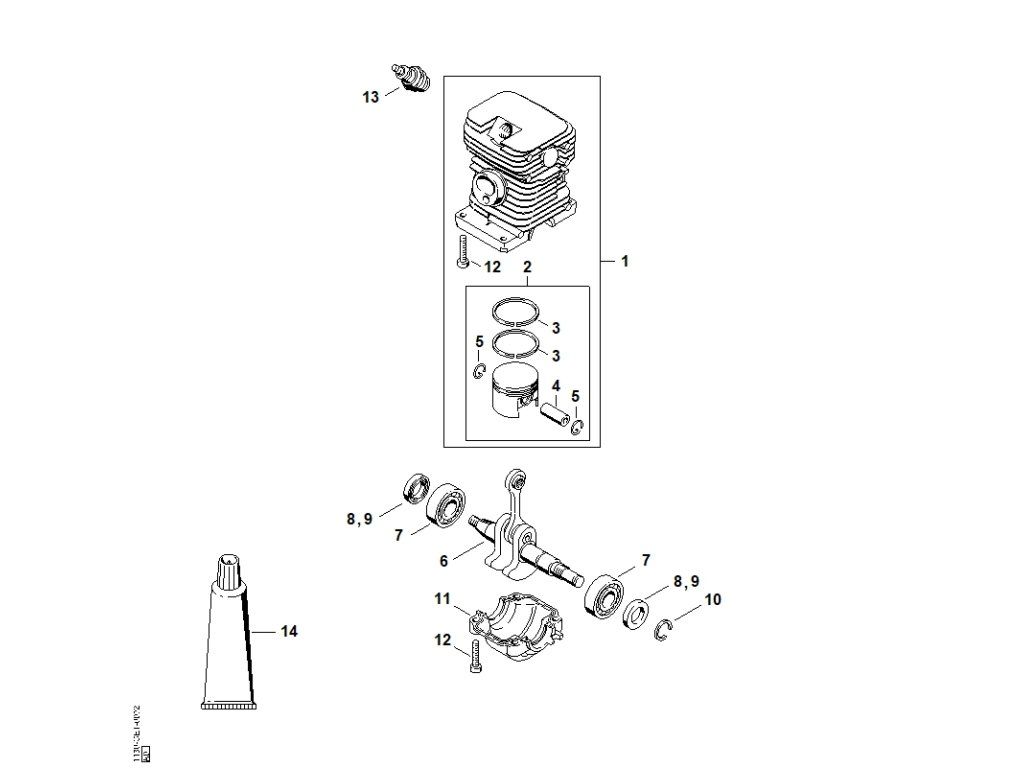 MS 170 / C - valec / Náhradný diel číslo: 1, Valec s piestom ø 37 mm, obsahuje diely č.