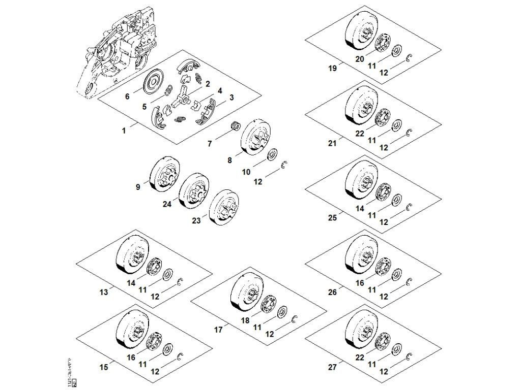 MS 260 / D - spojka, reťazové koleso / Náhradný diel číslo: 1, Spojka, obsahuje diely č.: 2,3,4,5,6