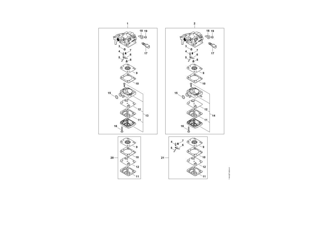MS 172 / Diely karburátora / Náhradný diel číslo: 1, Karburátor 1148/21, obsahuje diely č.: 3,4,5,6,7,8,9,10,11,12,13,15,16,17,18,19