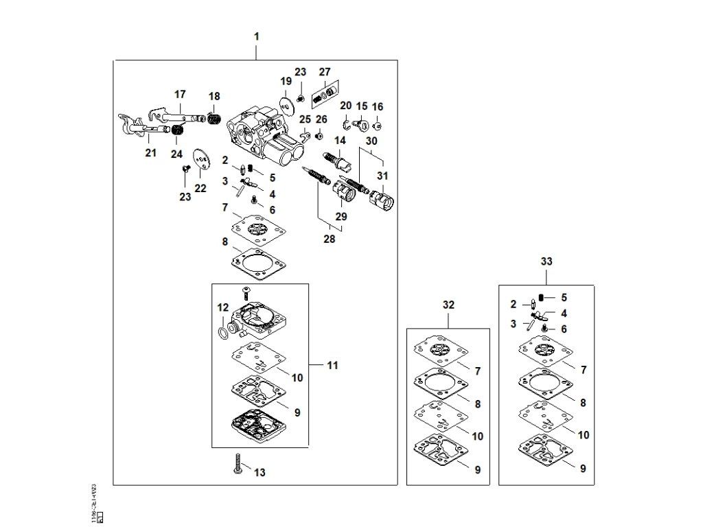 MS 182 / Diely karburátora / Náhradný diel číslo: 1, XXX, obsahuje diely č.: 2,3,4,5,6,7,8,9,10,11,12,13,14,15,16,17,18,19,20,21,22,23,24,25,26,27,28,29,30,31