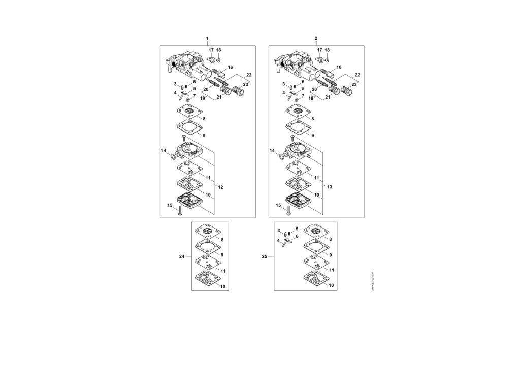 MS 212 / Diely karburátora / Náhradný diel číslo: 1, XXX, obsahuje diely č.: 3,4,5,6,7,8,9,10,11,12,14,15,16,17,18,19,20,21,22,23