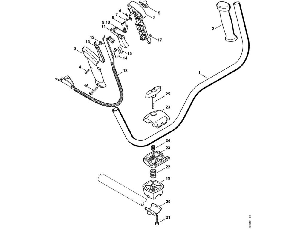 Km 130 / Dvojručná rukoväť / Náhradný diel číslo: -1, Ovládacia rukoväť, obsahuje diely č.: 3 Až 9, 11 až 17
