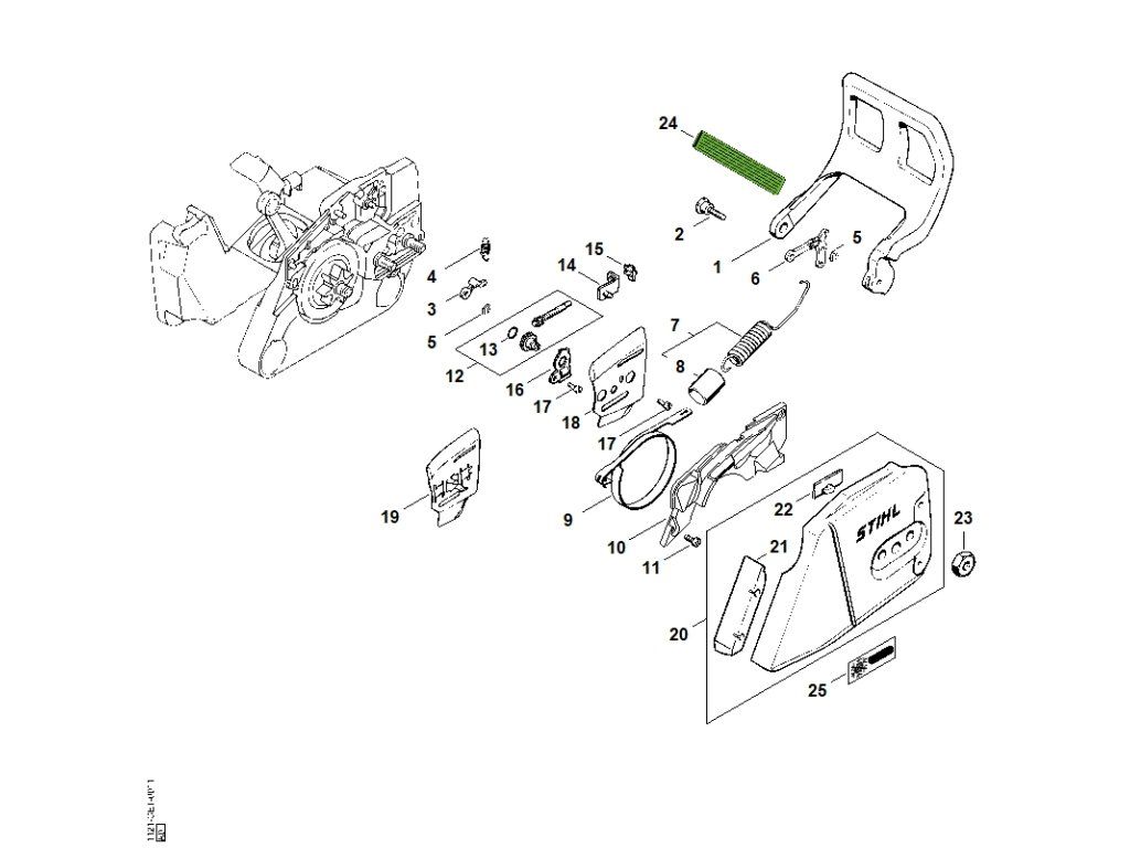 MS 260 / E - reťazová brzda / Náhradný diel číslo: 12, Súprava, obsahuje diely č.: 13