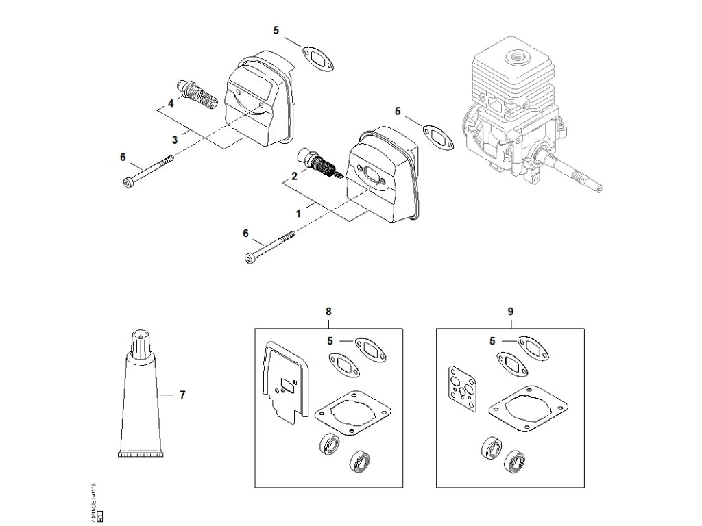 FS 45 C-E / E - tlmič výfuku / Náhradný diel číslo: 8, Súprava tesnenia, obsahuje diely č.: 5