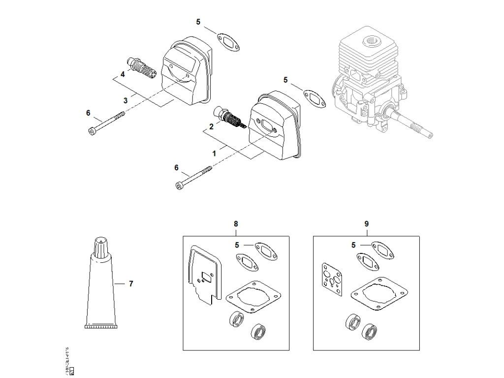 FS 38 2-MIX / E - tlmič výfuku / Náhradný diel číslo: 9, Súprava tesnenia, obsahuje diely č.: 5