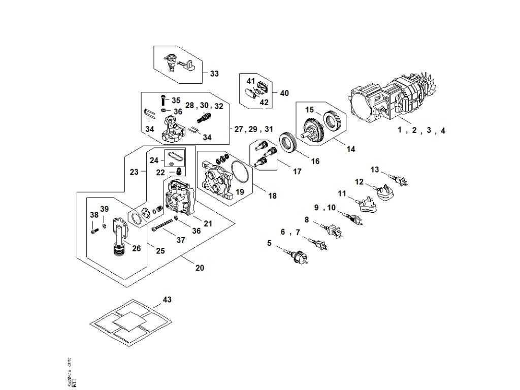 Elektromotor, Prívodný kábel, Ventilový blok, Čerpadlo / Náhradné diely Stihl