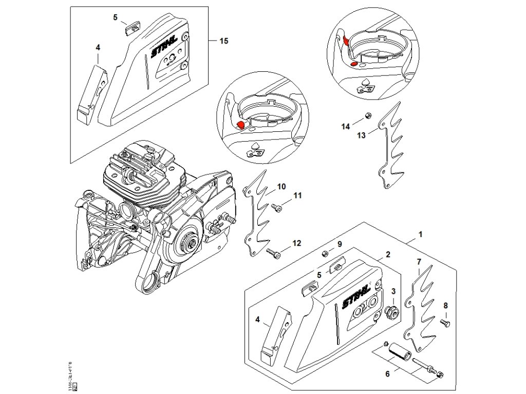 MS 661 / F - kryt reťazového kolesa / Náhradný diel číslo: 2, Kryt reťazového kolesa, obsahuje diely č.: 3,4,5