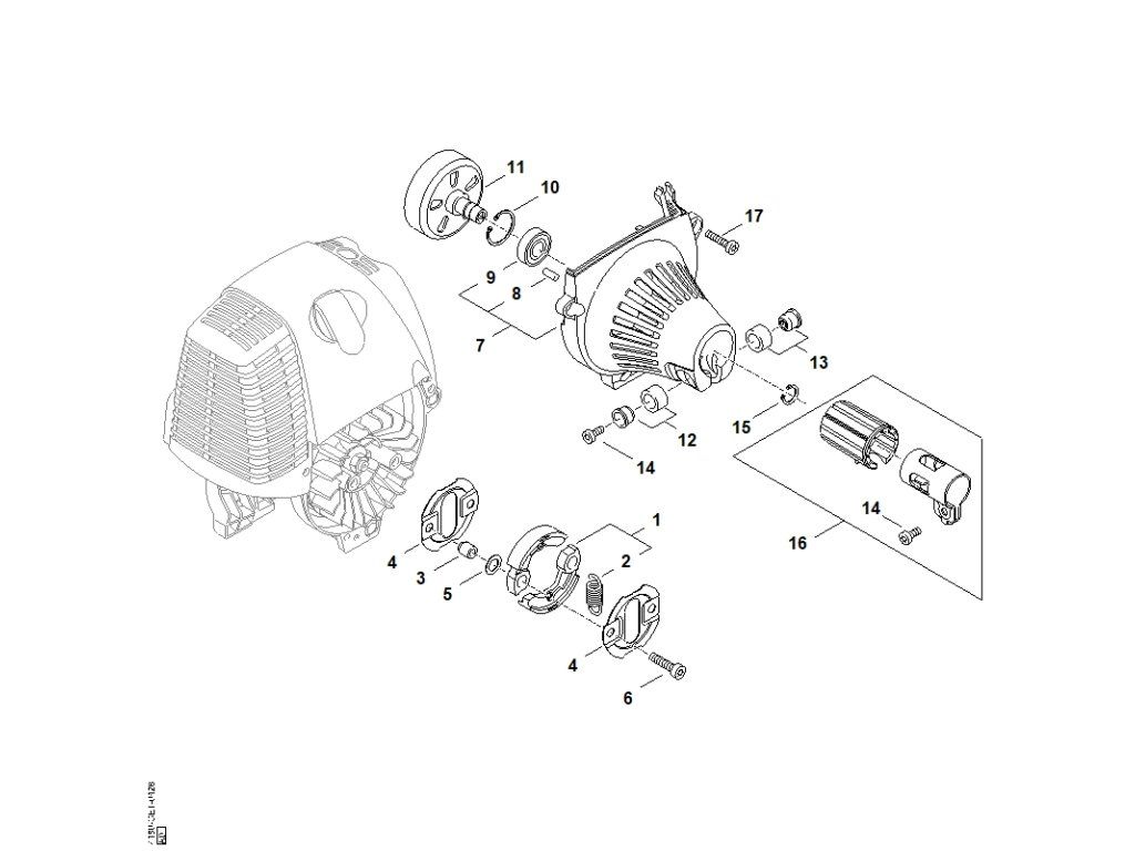 FS 130 / F - spojka, kryt ventilátora / Náhradný diel číslo: 16, Upínacia svorka, obsahuje diely č.: 14