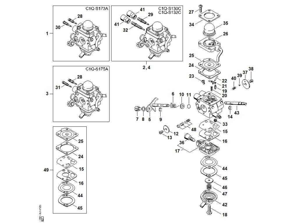 FS 130 / G - karburátor c1q-s173, c1q-s130, c1q-s175, c1q-s132 / Náhradný diel číslo: 1, Karburátor C1Q-S173A, obsahuje diely č.: 5,6,7,8,9,10,11,12,13,14,15,16,17,18,19,20,21,22,23,24,25,26,27,28,30,33,34,35,36...