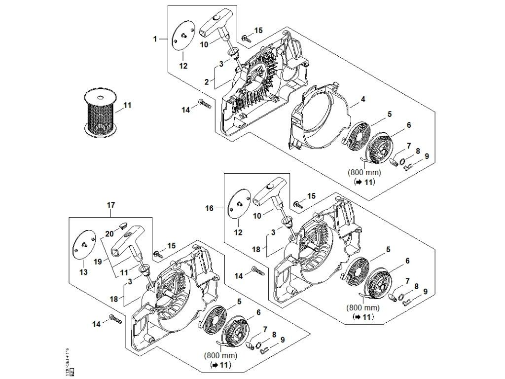 MS 180 / G - štartovacie zariadenie / Náhradný diel číslo: 11, Štartovacie lanko