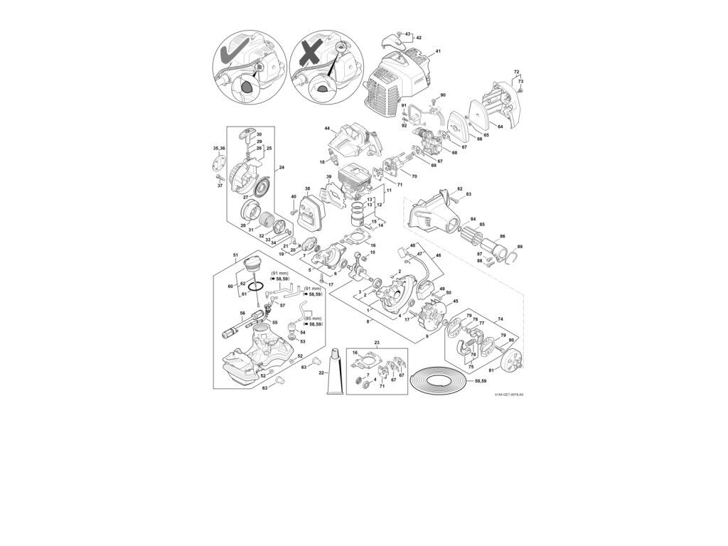 FS 94 C-E / G - z čísla stroja 516962085 / Náhradný diel číslo: 60, Uzáver nádržky, obsahuje diely č.: 61, 62