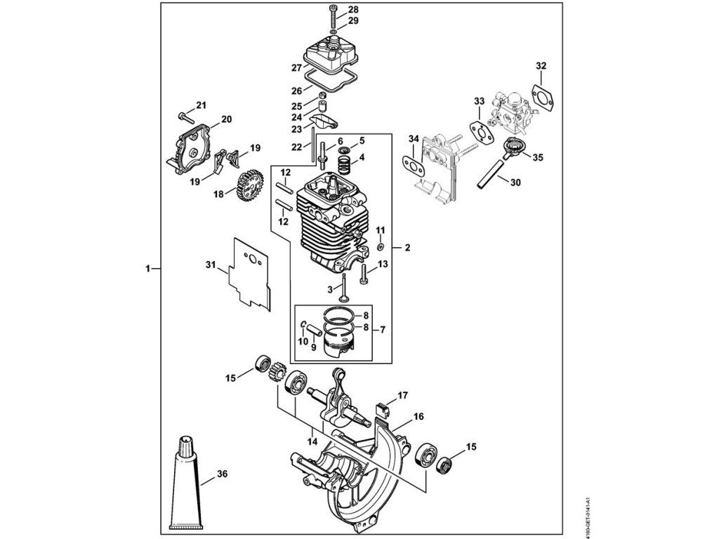 HT 100 / Hnacia sústava ø 40 mm / Náhradný diel číslo: 1, Hnacia sústava, obsahuje diely č.: 2,3,4,5,6,7,8,9,10,11,12,13,14,15,16,17,18,19,20,21,22,23,24,25,26,27,28,29,30,31,32,33...