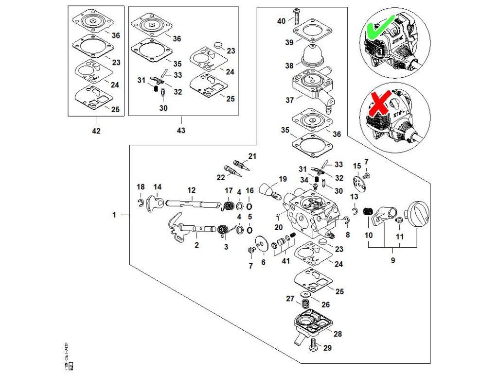 FS 131 / I - karburátor 4180/20 / Náhradný diel číslo: 42, Súprava dielov karburátora, obsahuje diely č.: 24,25,35,36