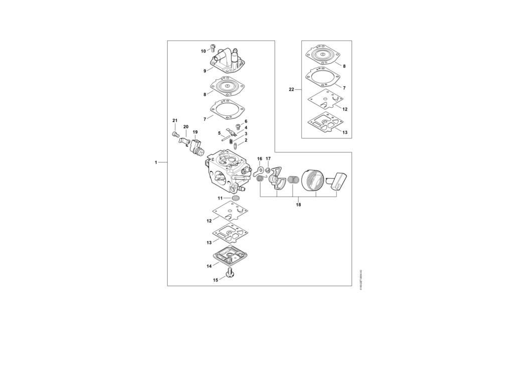 FS 561 C-EM / I - karburátor / Náhradný diel číslo: 1, Karburátor HDA-348A, obsahuje diely č.: 2,3,4,5,6,7,8,9,10,11,12,13,14,15,16,17,18,19,20,21